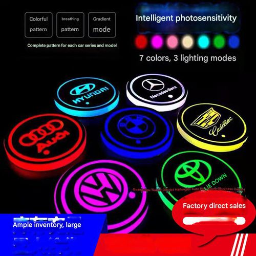 Car luminous rainbow LED coaster anti slip mat luminous automatic sensing decorative atmosphere light