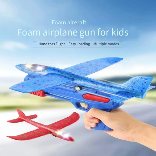 Glowing Foam Aircraft 10M Launcher Catapult Glider Aircraft Gun Toy Children's Outdoor Game Bubble Model Shooting Flying Roundab