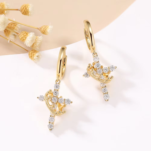 Royal Majesty Crowned Cross Dangle Earrings