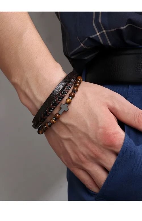 Natural volcanic stone elements, simple cross multi-layer bracelet