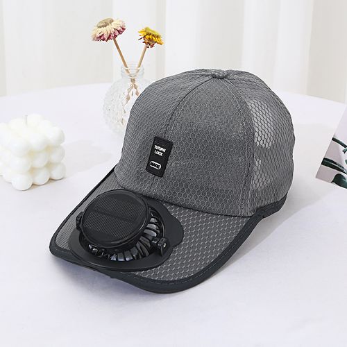 Solar charging, with fan and breathable mesh cap gray