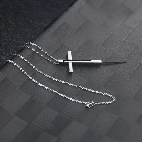 Stainless Steel Retractable Cross Toothpicks Pendant Metal Pocket Toothpicks with Protective Holder Exquisite Toothpick Necklace