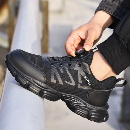 Shoes with anti-smashing and puncture-resistant steel toe caps, lightweight and comfortable black