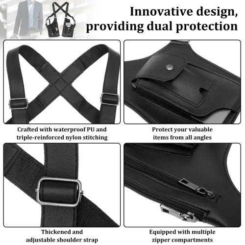 Underarm Anti Theft Bag PU Double Shoulder Strap Multi-Pocket Outdoor Anti-Theft Tactical Fishing Bag Waterproof Men Armpit Bag