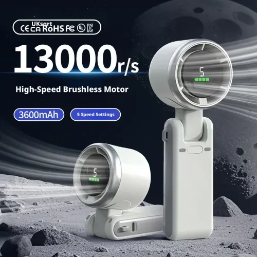 New Portable Electric Fan Creative High-power Display Screen Foldable Handheld Fan USB Rechargeable Hanging Turbo Fan
