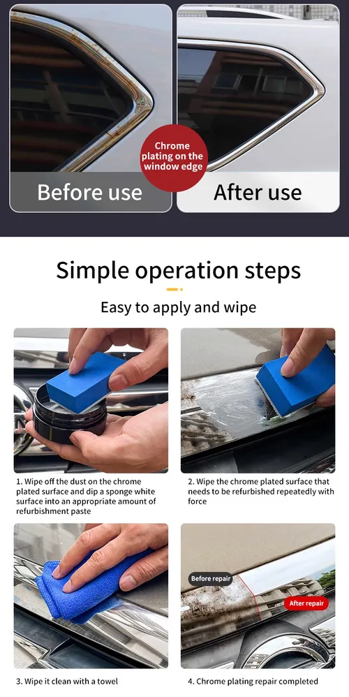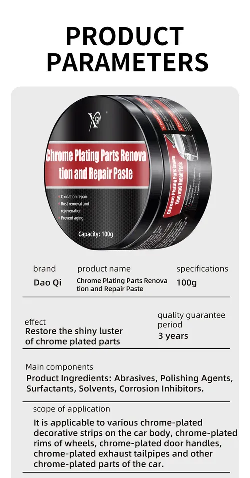 Car chrome parts refurbishment and repair paste, stain removal, water stains, metal gloss strip polishing paste