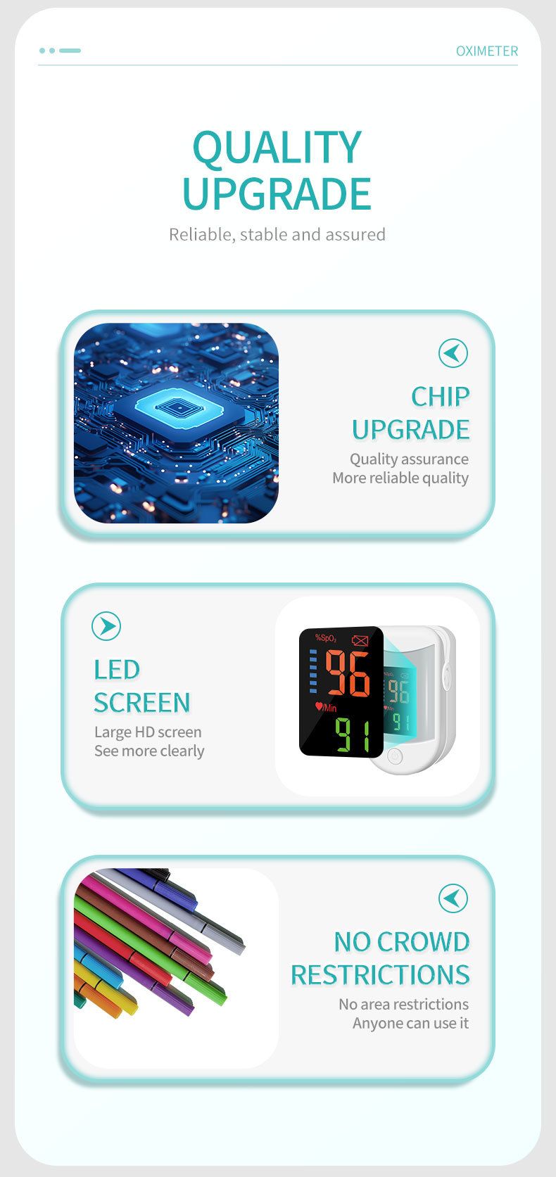Medical oximeter, heart rate, blood oxygen dual measurement color screen