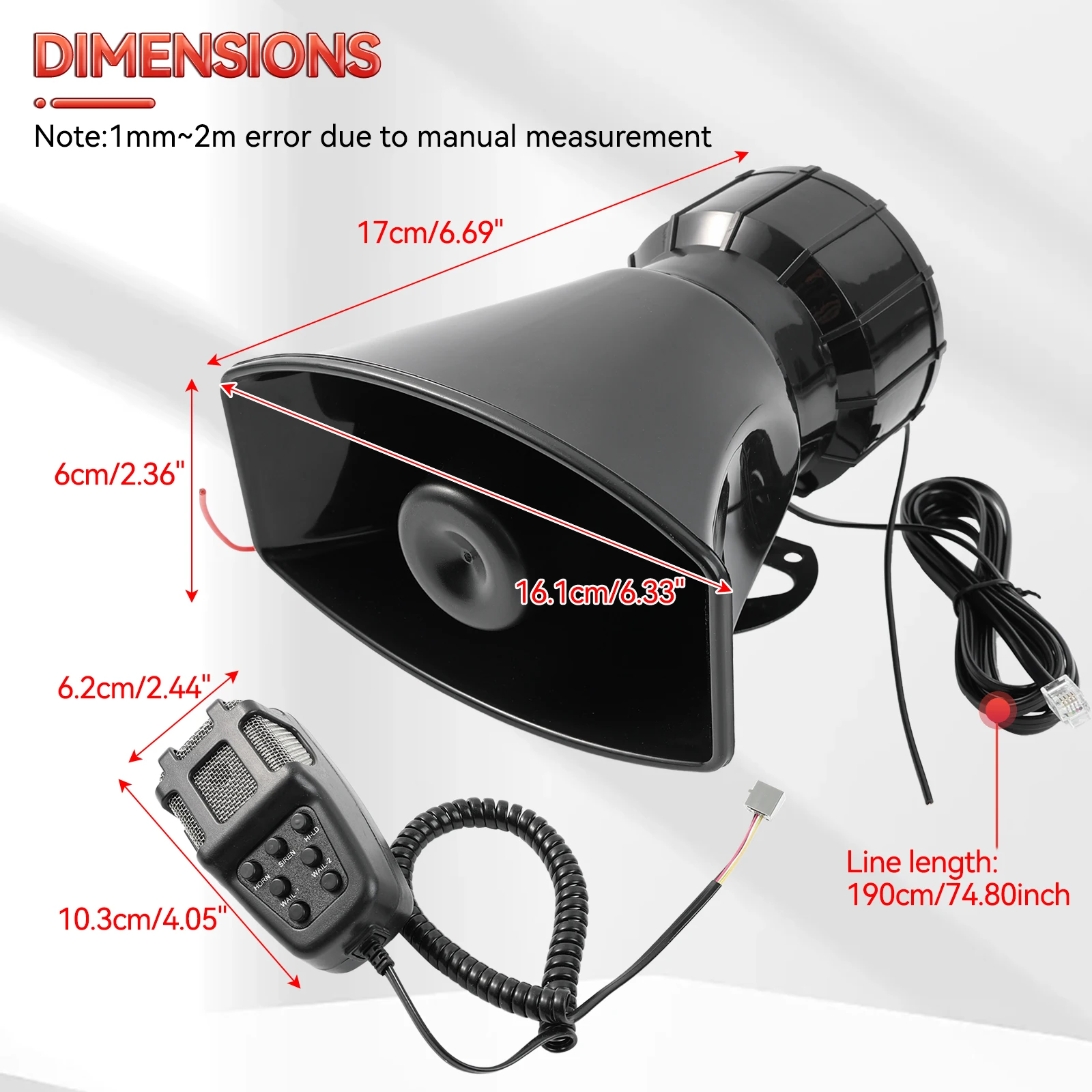 PA Mic Size: 6.2*5.8*10.3cm / 2.5*2.3*4.1” (L*W*H)