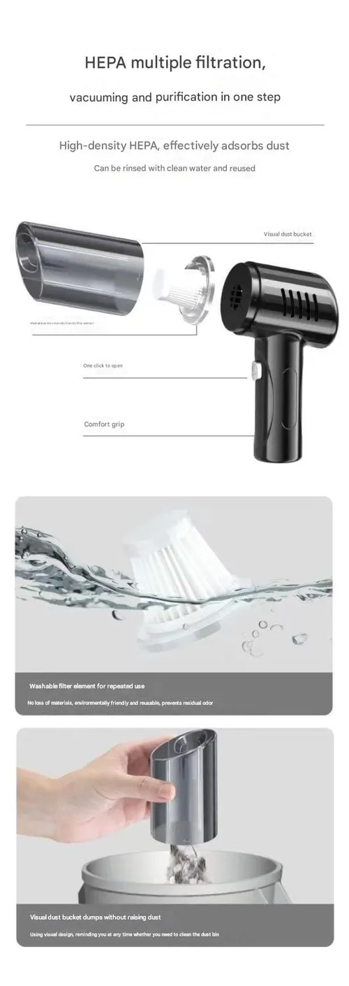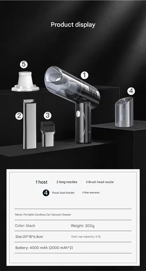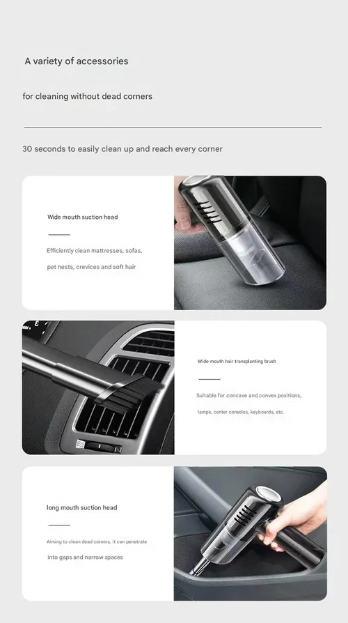 Portable car vacuum cleaner, small size, detachable head, easy to store car cleaning tools