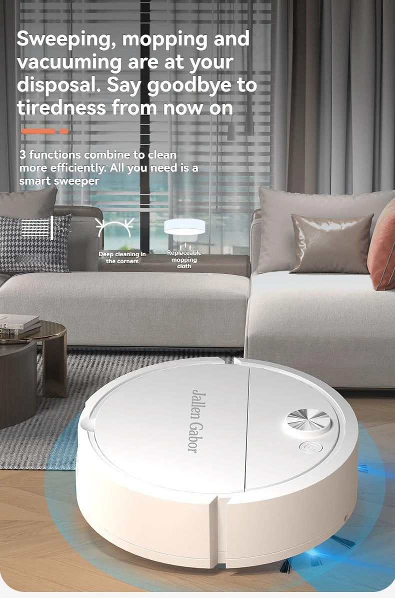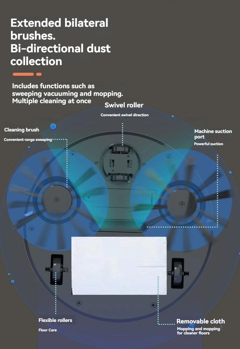 3. Sweep, mop, vacuum, do whatever you want, say goodbye to fatigue from now on. Combined with the three functions, the cleaning efficiency is higher. All you need is an intelligent robot vacuum cleaner. wet wipes absorb mops; Extended side brush to deeply clean edges and corners; Replaceable mop