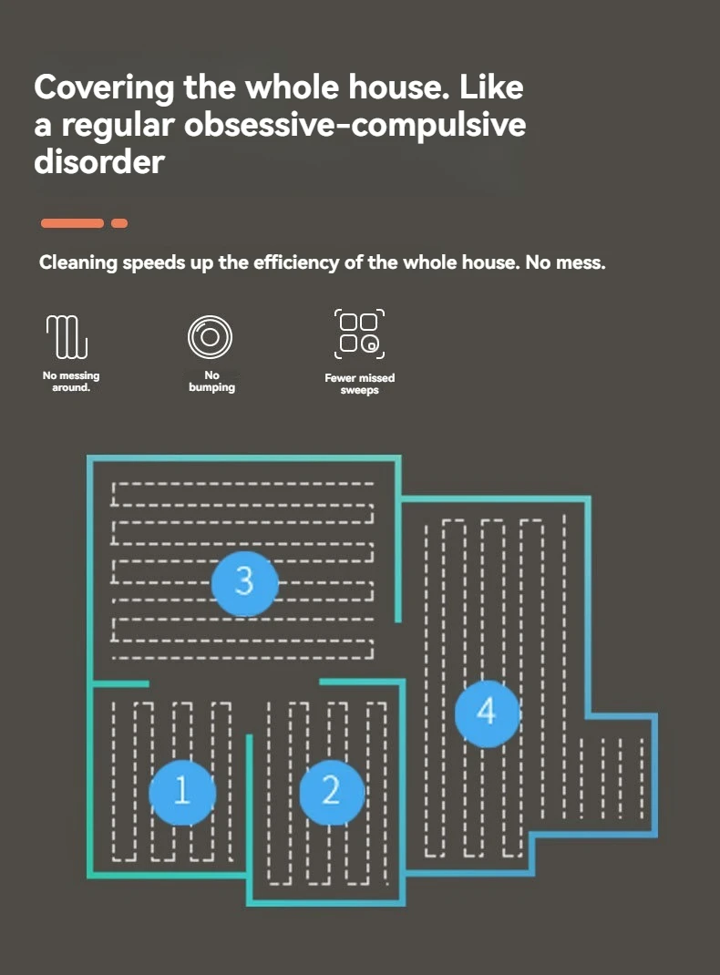 7. It covers the whole house, like a normal OCD. The cleaning efficiency is greatly improved, and the whole house is clean, with less running, no bumping, and less missed sweeping