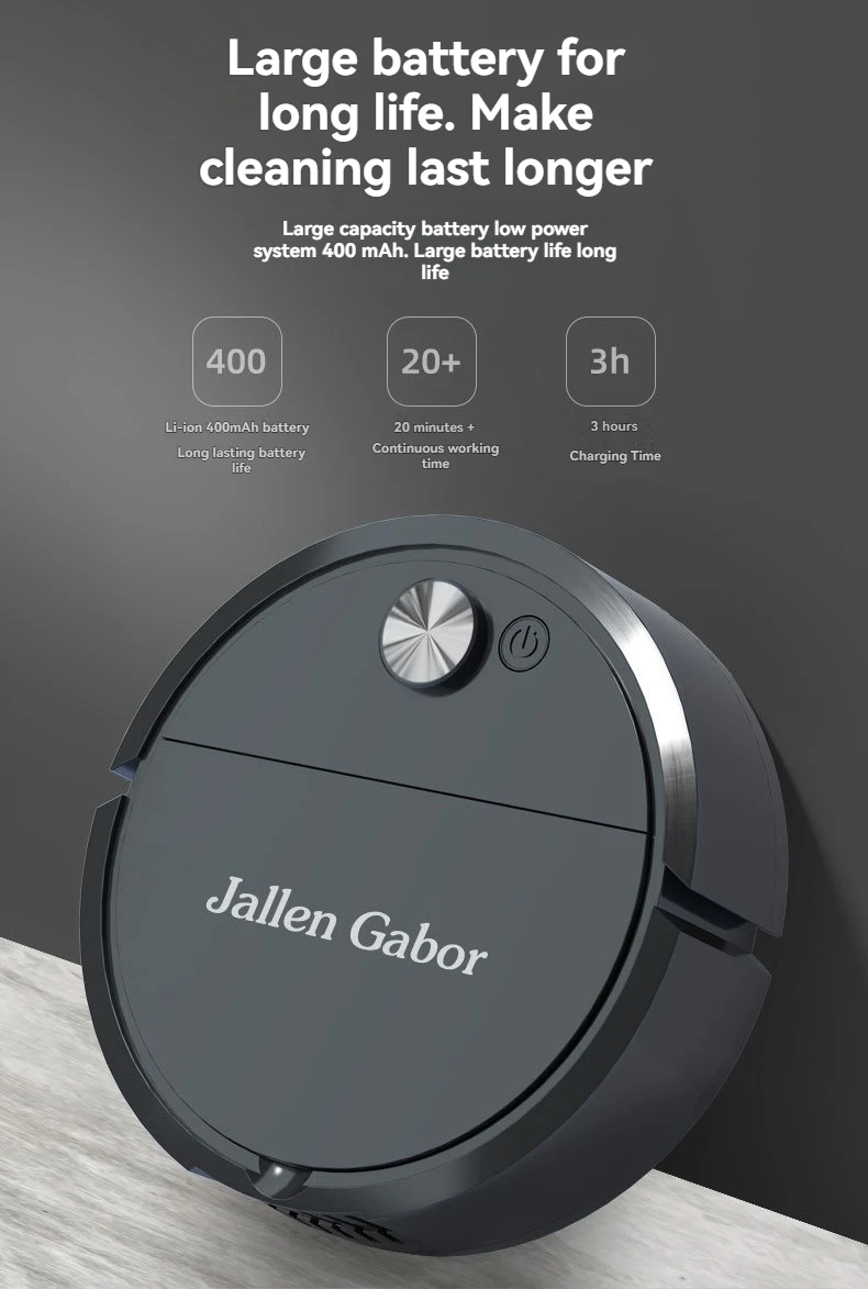 9. he large battery lasts longer for longer cleaning. Large capacity battery, low power consumption system, 400mAh high power, long service life. 400mAh lithium battery, long-lasting resistance; 20 minutes of continuous working time; 3 hours charging time
