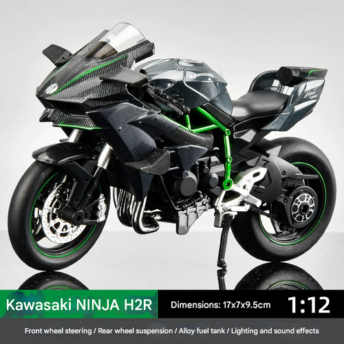 1: 12 Kawasaki H2r Black Sound and Light 32A Motorcycle Model Toy Car