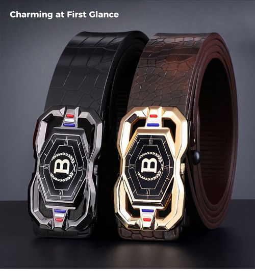 120cm Men's leather belt, featuring an elegant crocodile skin pattern and an automatic buckle
