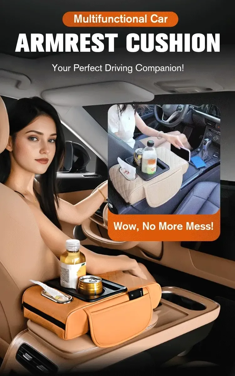 Integrated Pressurized Multifunctional Car Armrest Heightening Pad yellow