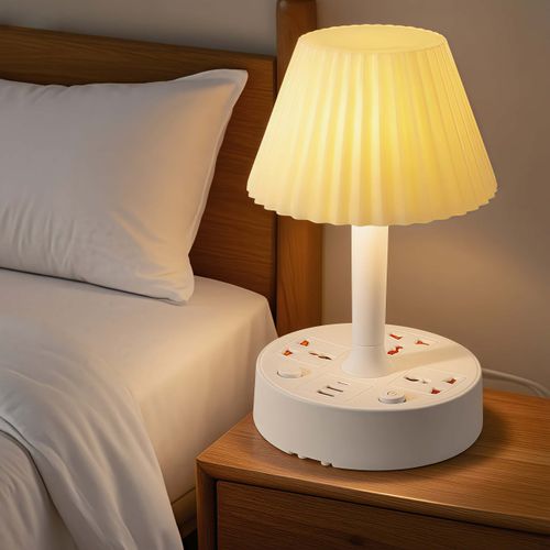 Three-color adjustable night light, multi-functional desk lamp with power outlet, equipped with a 1.8-meter power cord and USB interface.